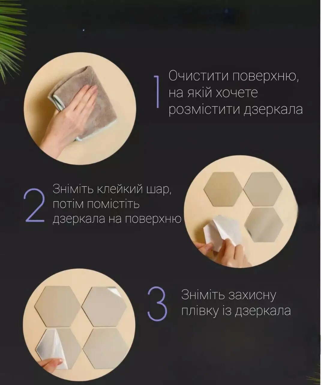 Дзеркальна сторона покрита захисною плівкою, яку після монтажу необхідно зняти.